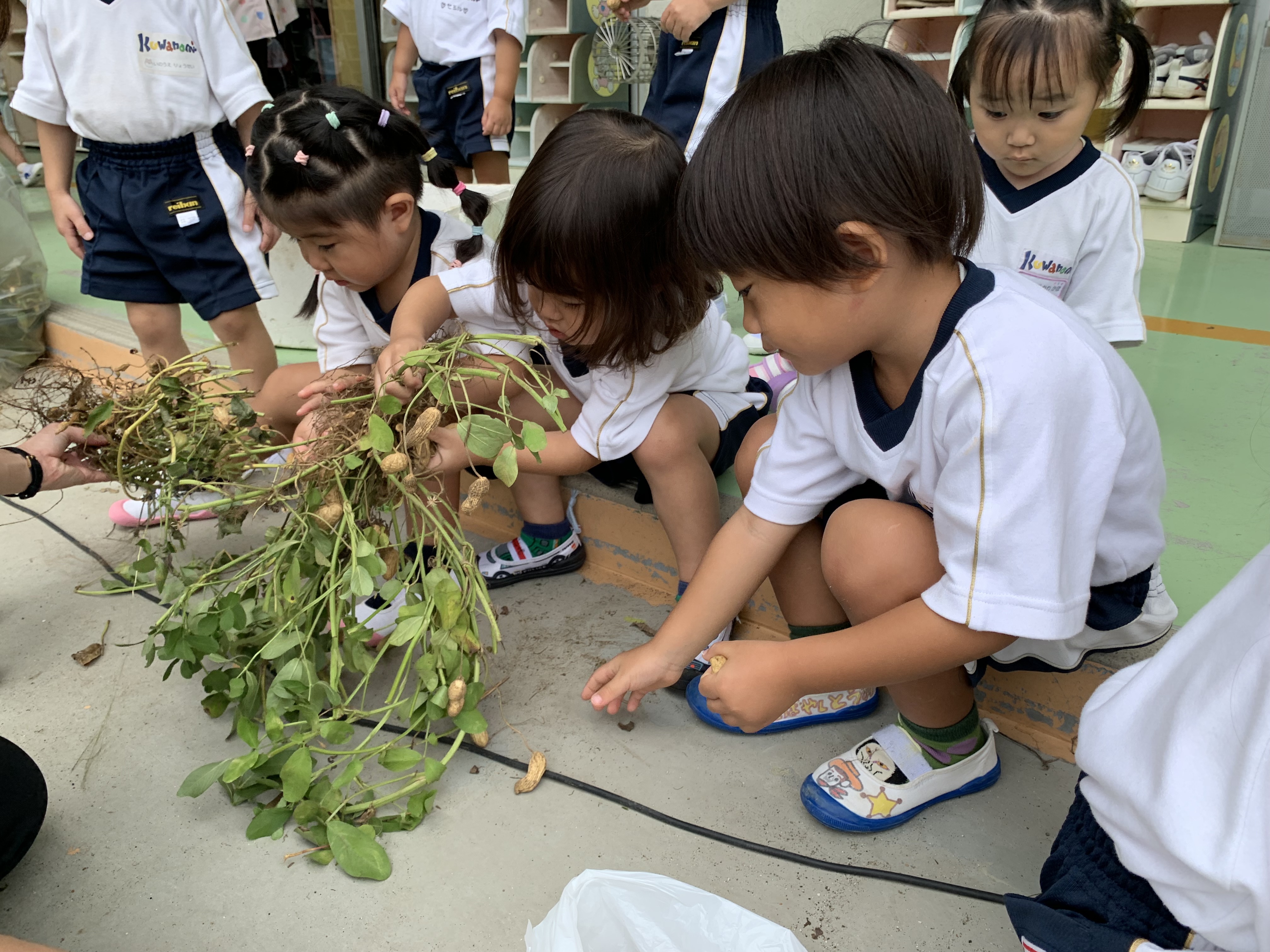 根っこのところに実っている落花生♡プチプチとるお手伝いをしてもらいました♡