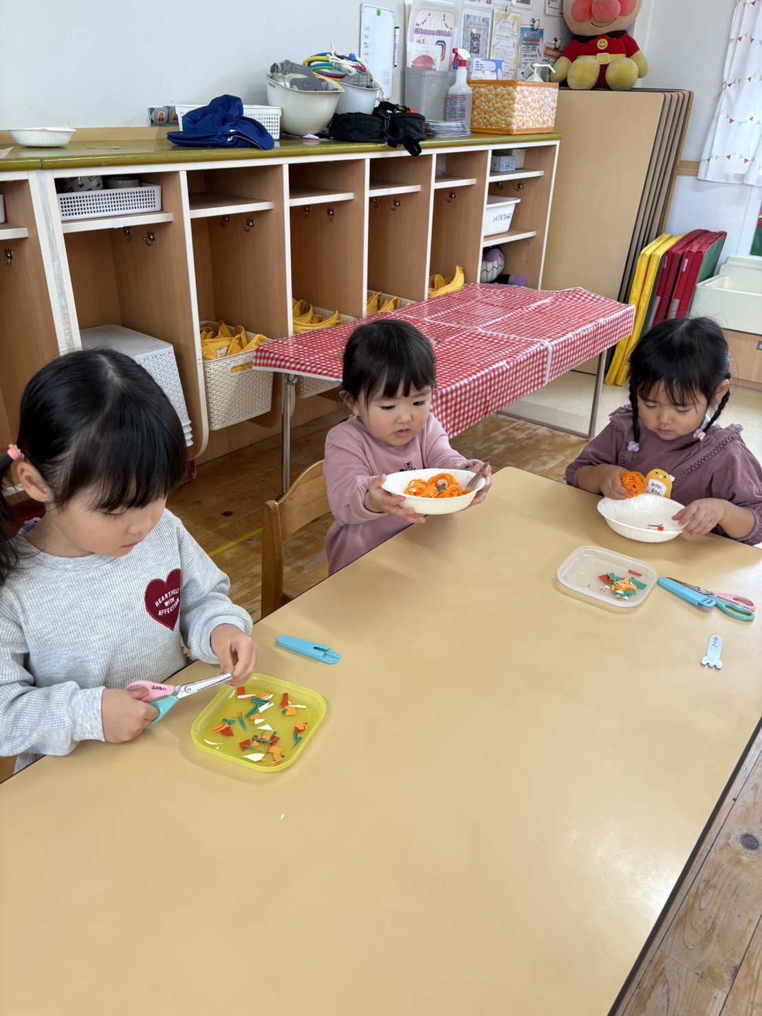 ハサミ✂️で画用紙のお野菜をチョキチョキして