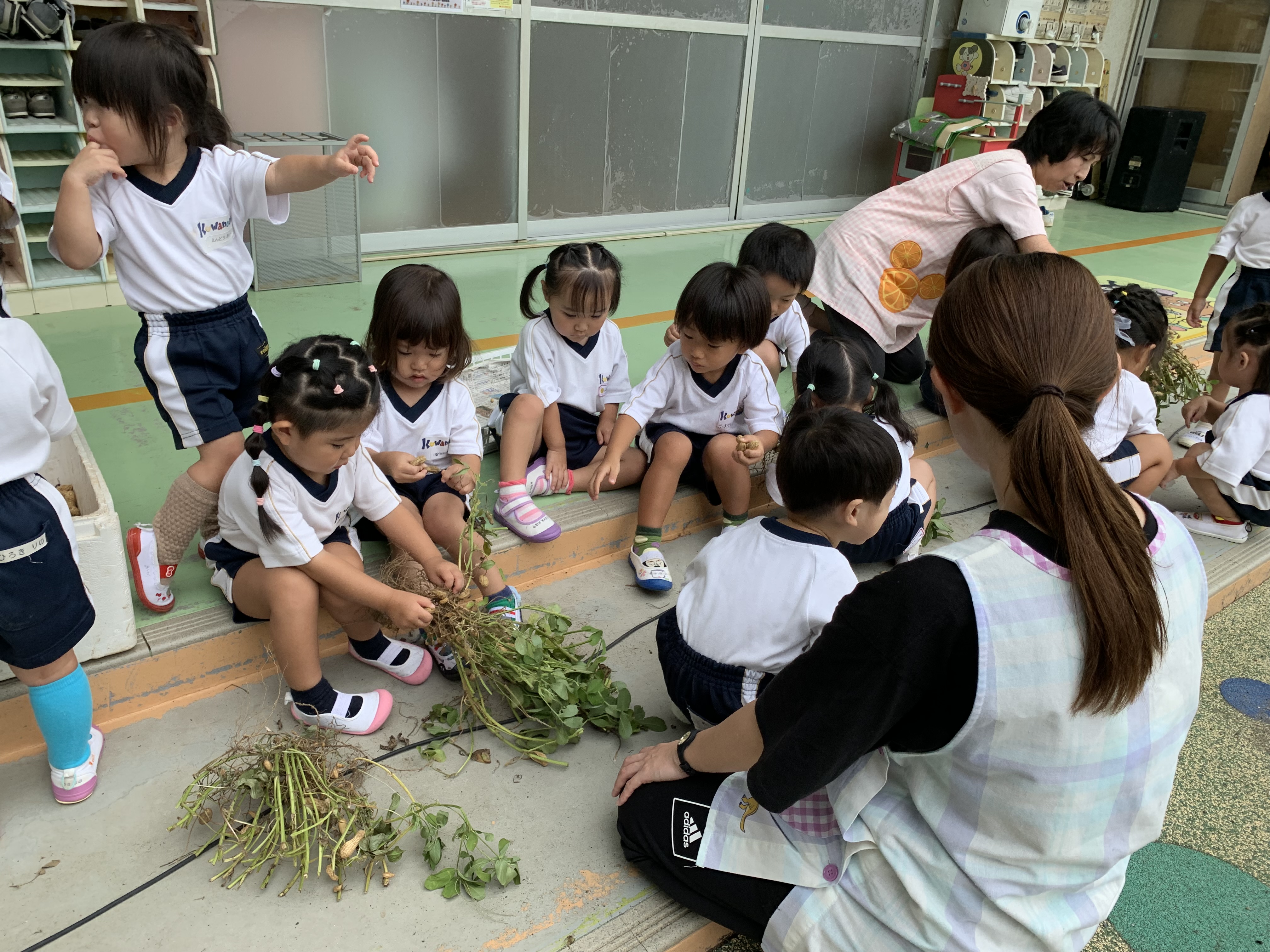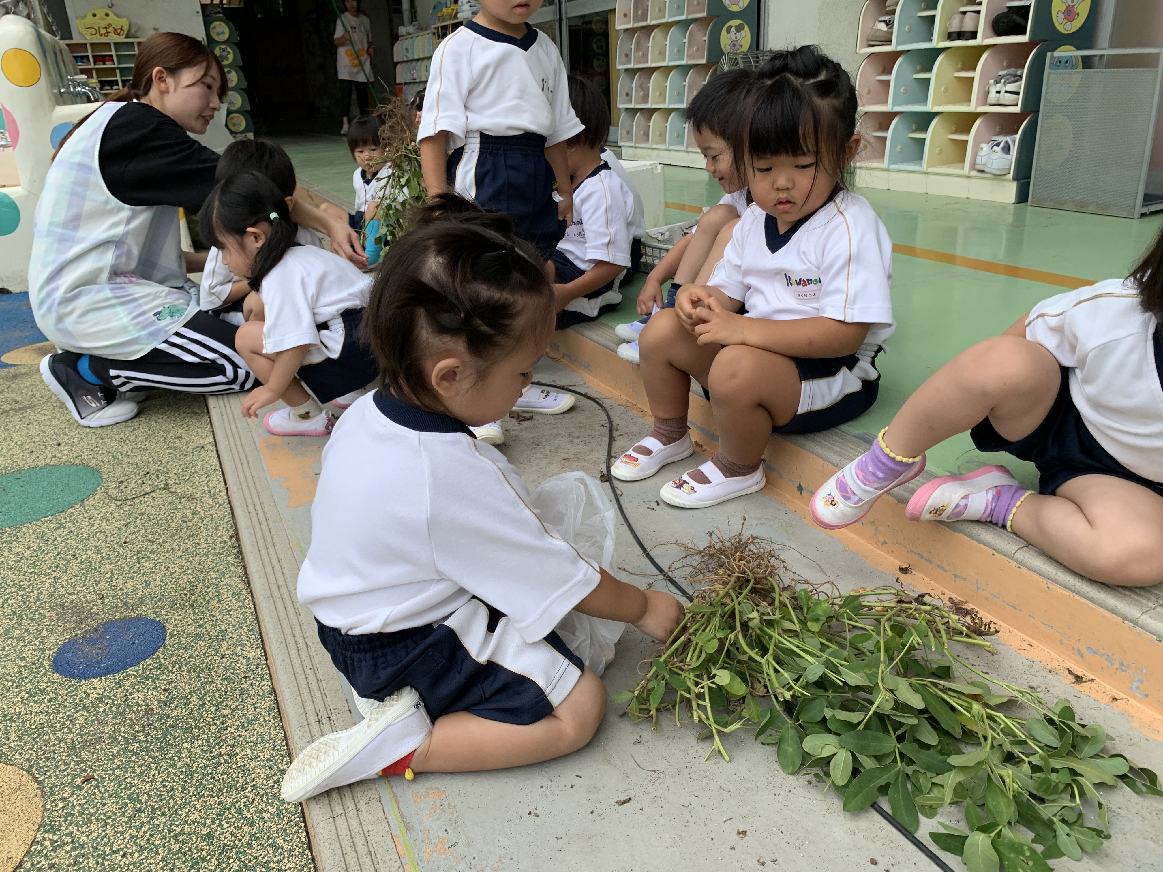 根っこのところに実っている落花生♡プチプチとるお手伝いをしてもらいました♡